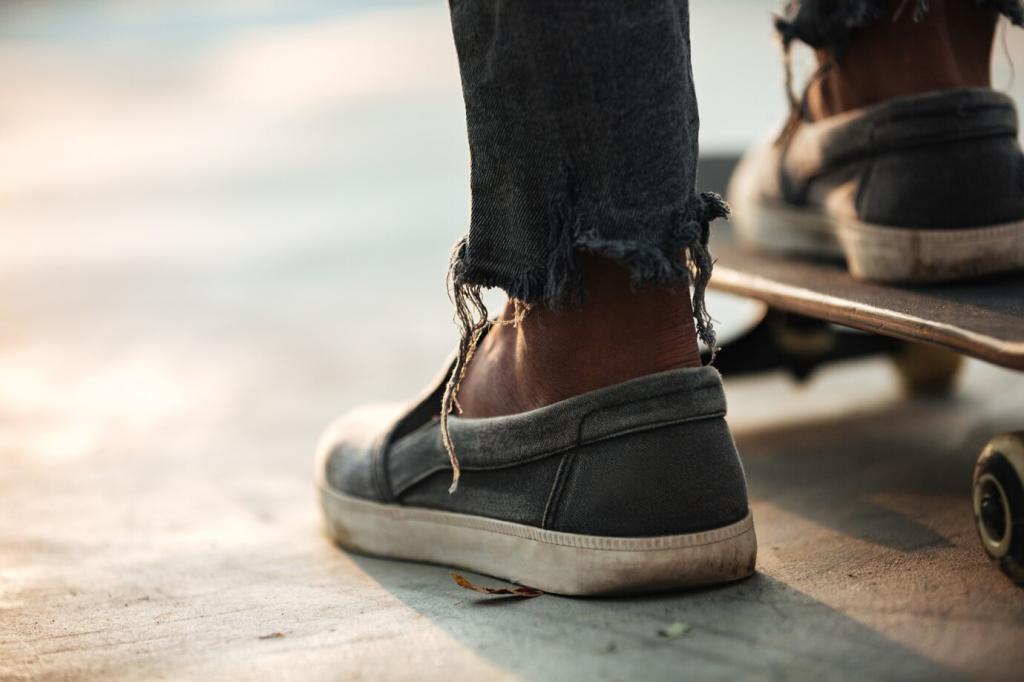 Aus Ananasfaser, Hanf und Pilzmyzel entstehen Obermaterialien, die atmungsaktiv, überraschend robust und angenehm zu tragen sind. Eine Leserin erzählte uns begeistert, wie ihre Myzel-Sneaker auf einer Regenwanderung trocken blieben. Teile deine Erfahrungen mit pflanzenbasierten Stoffen in den Kommentaren und inspiriere die Community mit deinem Alltagstest.